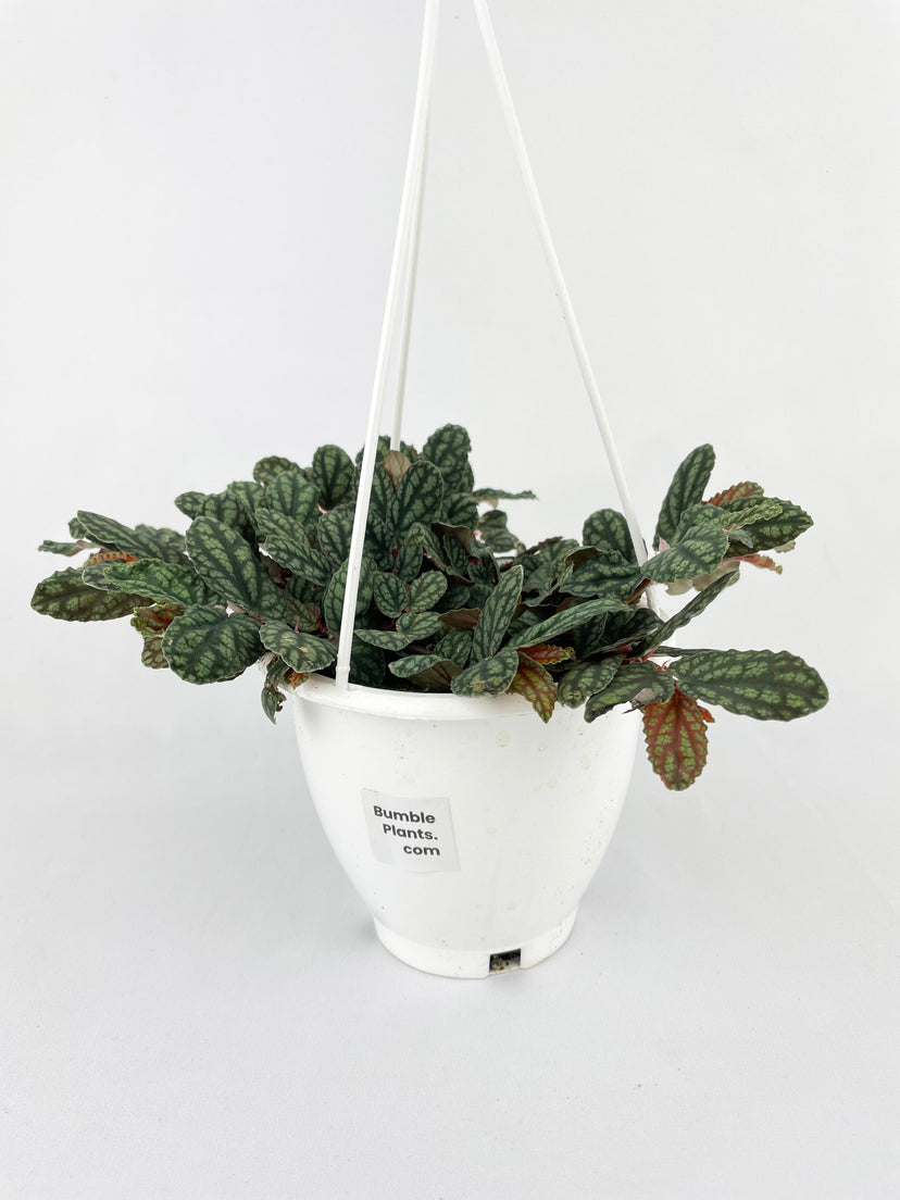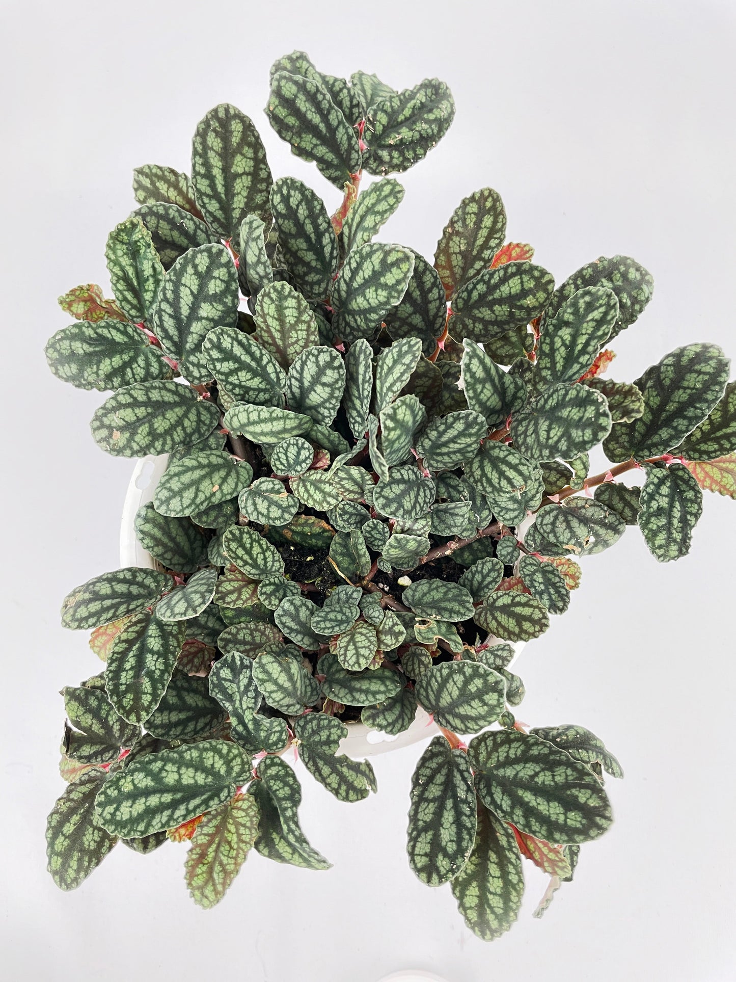 Watermelon Begonia (Pellionia Pulchra) is a trailing pellionia with the foliage shaped like a watermelon. It is often called a wavy watermelon begonia but it's actually from the pellionia genus family.