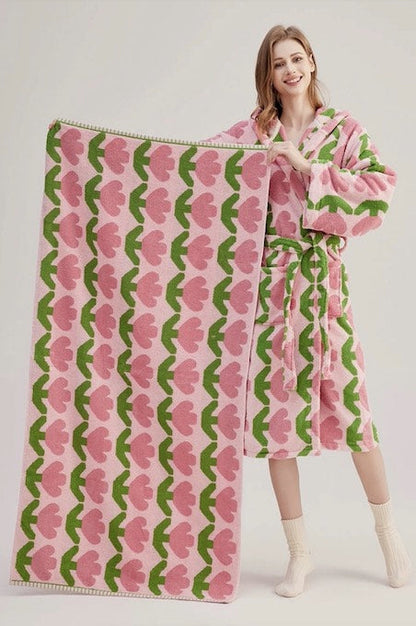 Featuring a fun playful floral prints, these whimsical Tulip Bathrobes come with 2 different colours - the feminine pinky floral prints and the elegant purple floral prints.