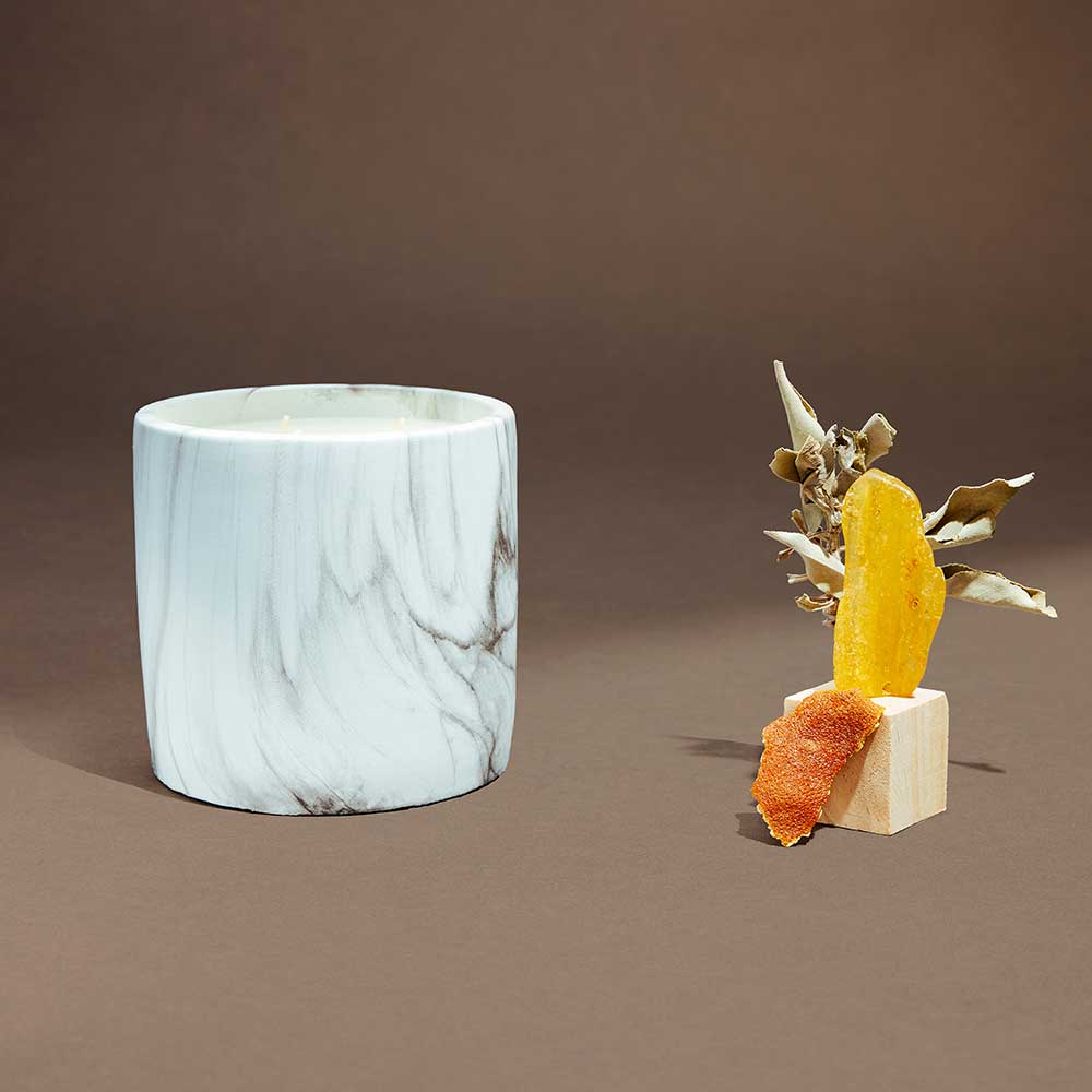 A handmade, hand-painted cement vessel with three organic hemp wicks, adding elegance to your home. Made with natural coconut wax. Eco-friendly, non-toxic and vegan.