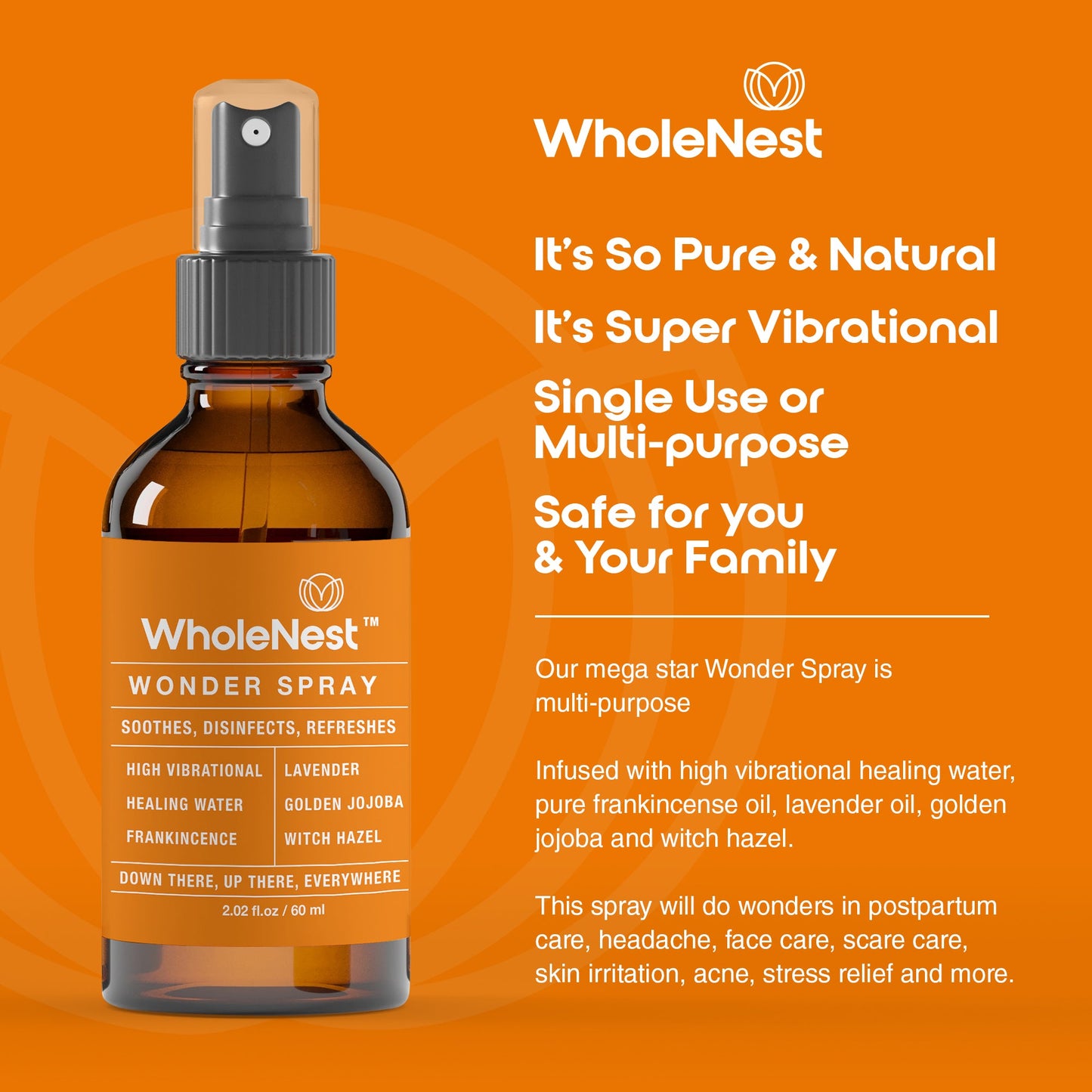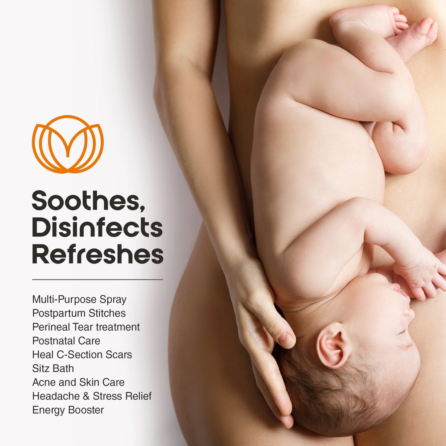 Wonder Spray is your trusted multipurpose elixir for perineal tear and postpartum care, soothing and refreshing. Great for stitches. It can also be used as the perfect face mist, stress and headache relief, skin irritation, diaper rash & more.